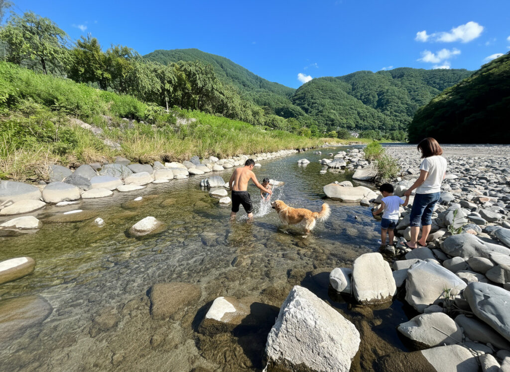 目の前には木曽川の景色が広がり、夏場などは川遊びや水遊びをしたり清流を眺めることができます。