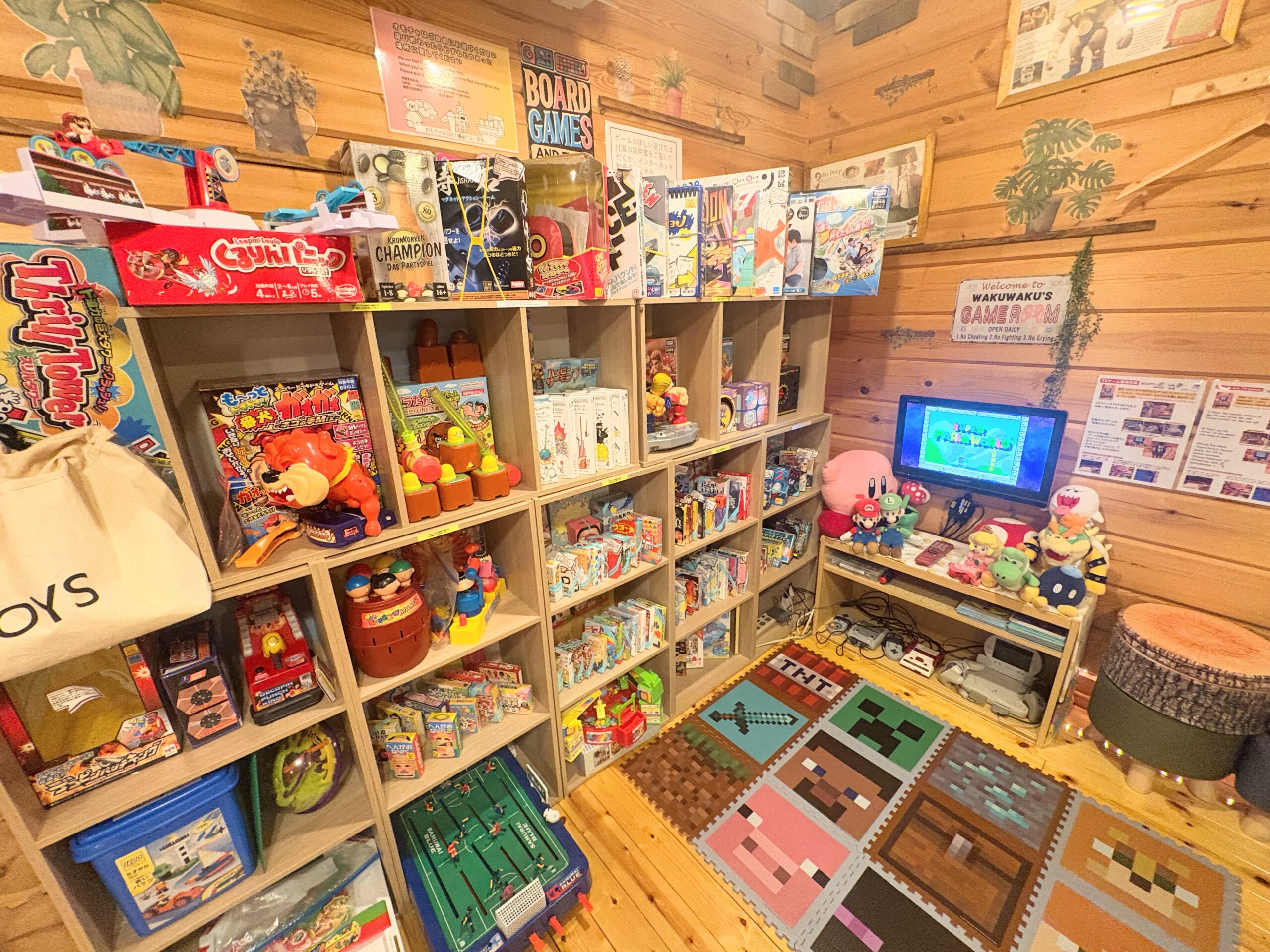 子どもも大人も楽しめる約100種類以上のオモチャやゲームなどを完備。