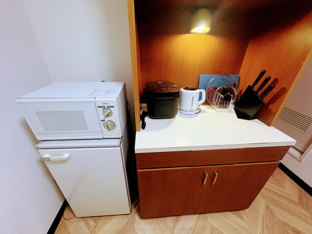 下記のとおり調理に必要な家電製品、調理器具、食器、グラス等は全てそろっていますので、