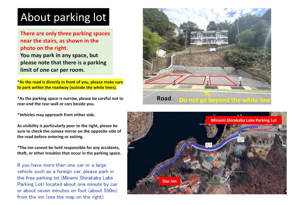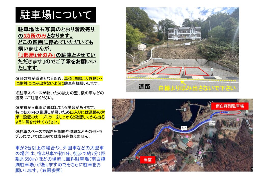 駐車場については以下の写真をご確認ください。