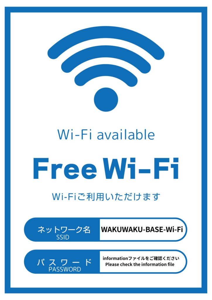 インターネットに接続するための、パスワード等はinfomationブックにてご確認ください。
